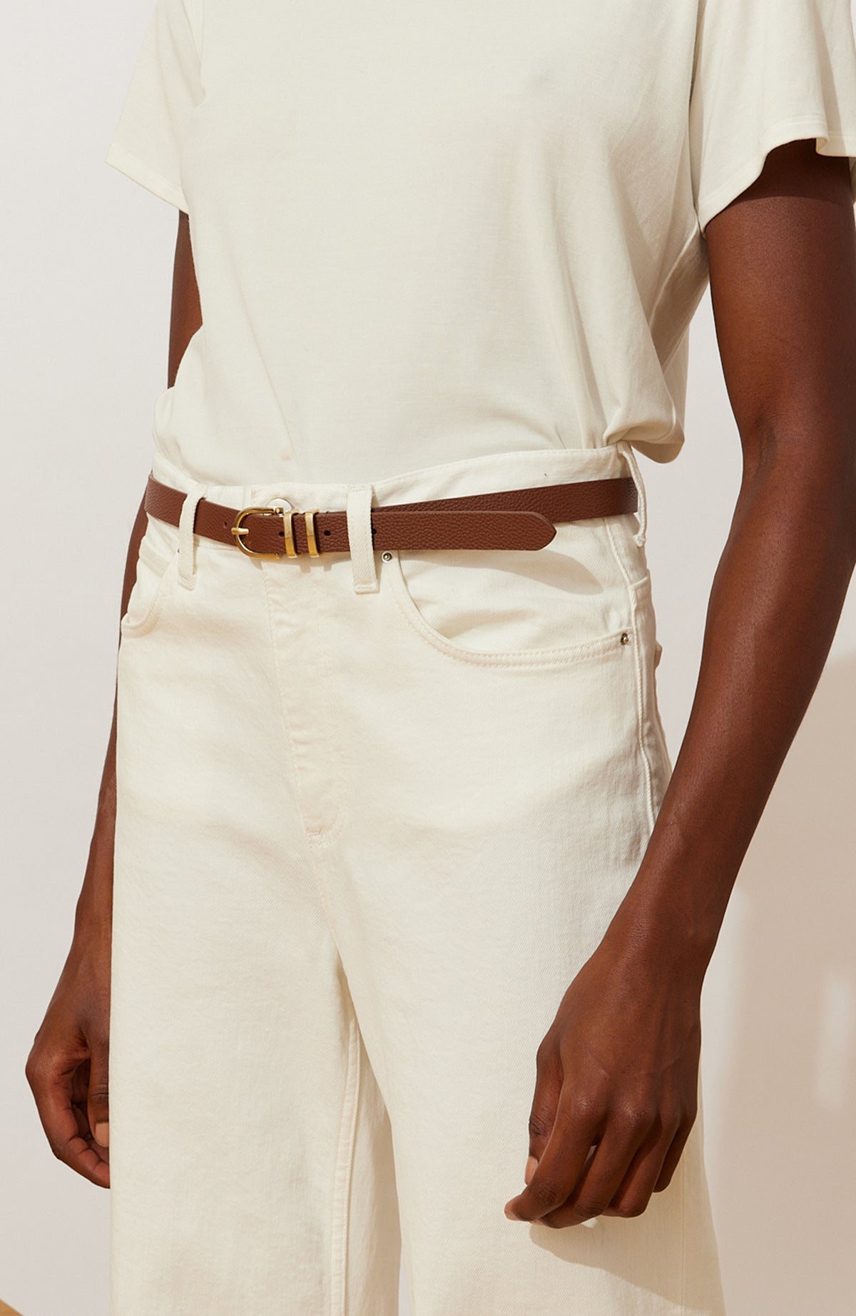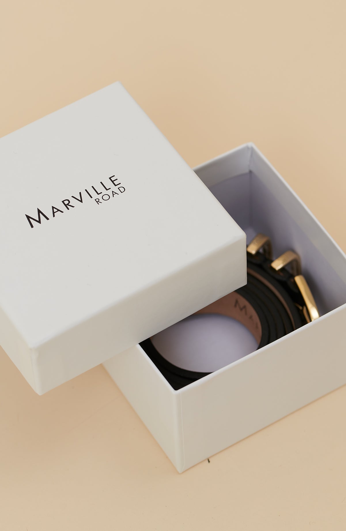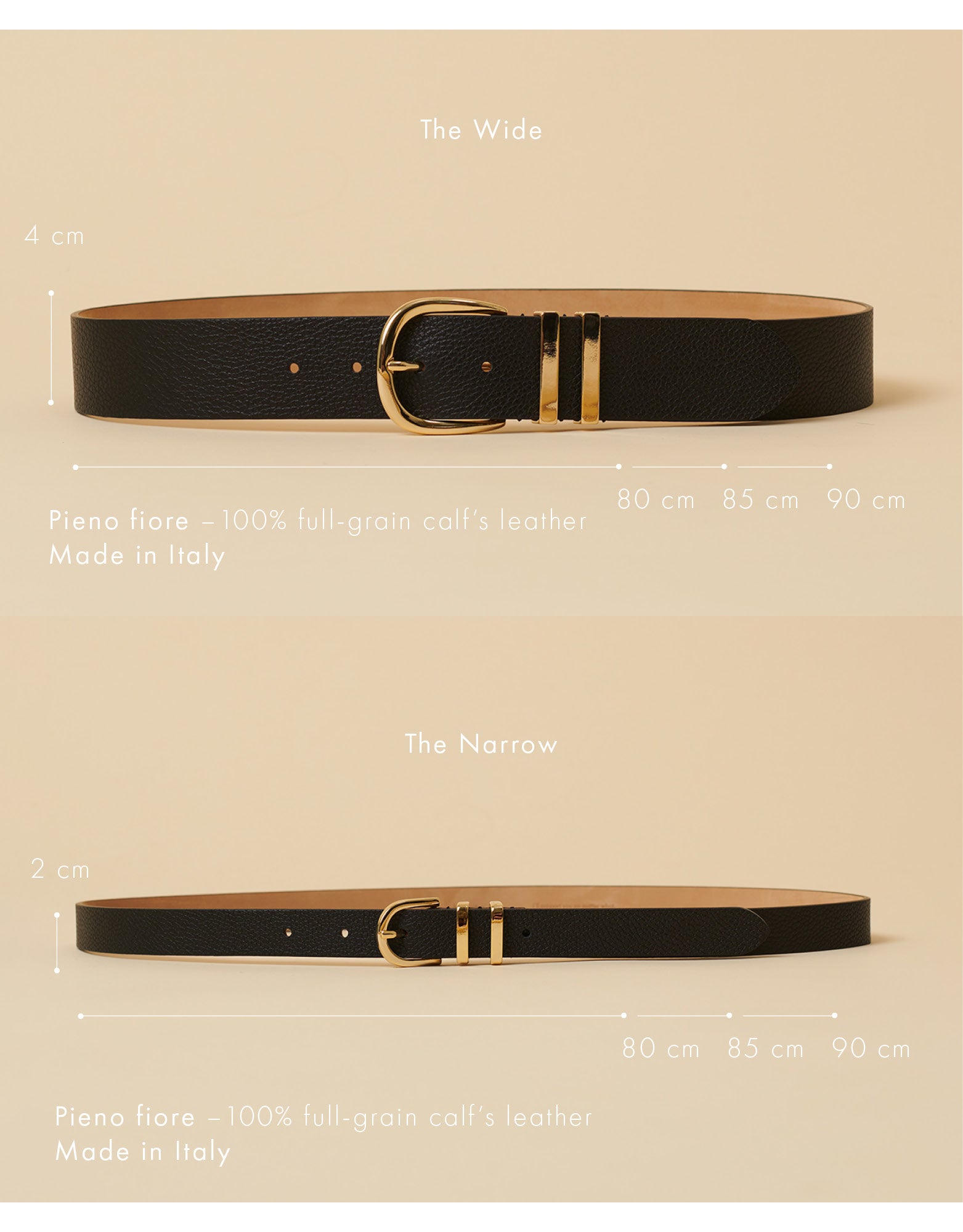 Our classical belts come in two shapes, wide and narrow, and two different colours – black and cognac. The classic buckle and high-quality leather create endless styling possibilities no matter the season or current trends. A true supporter – in life and for your outfit – that our Marville Woman will cherish forever!