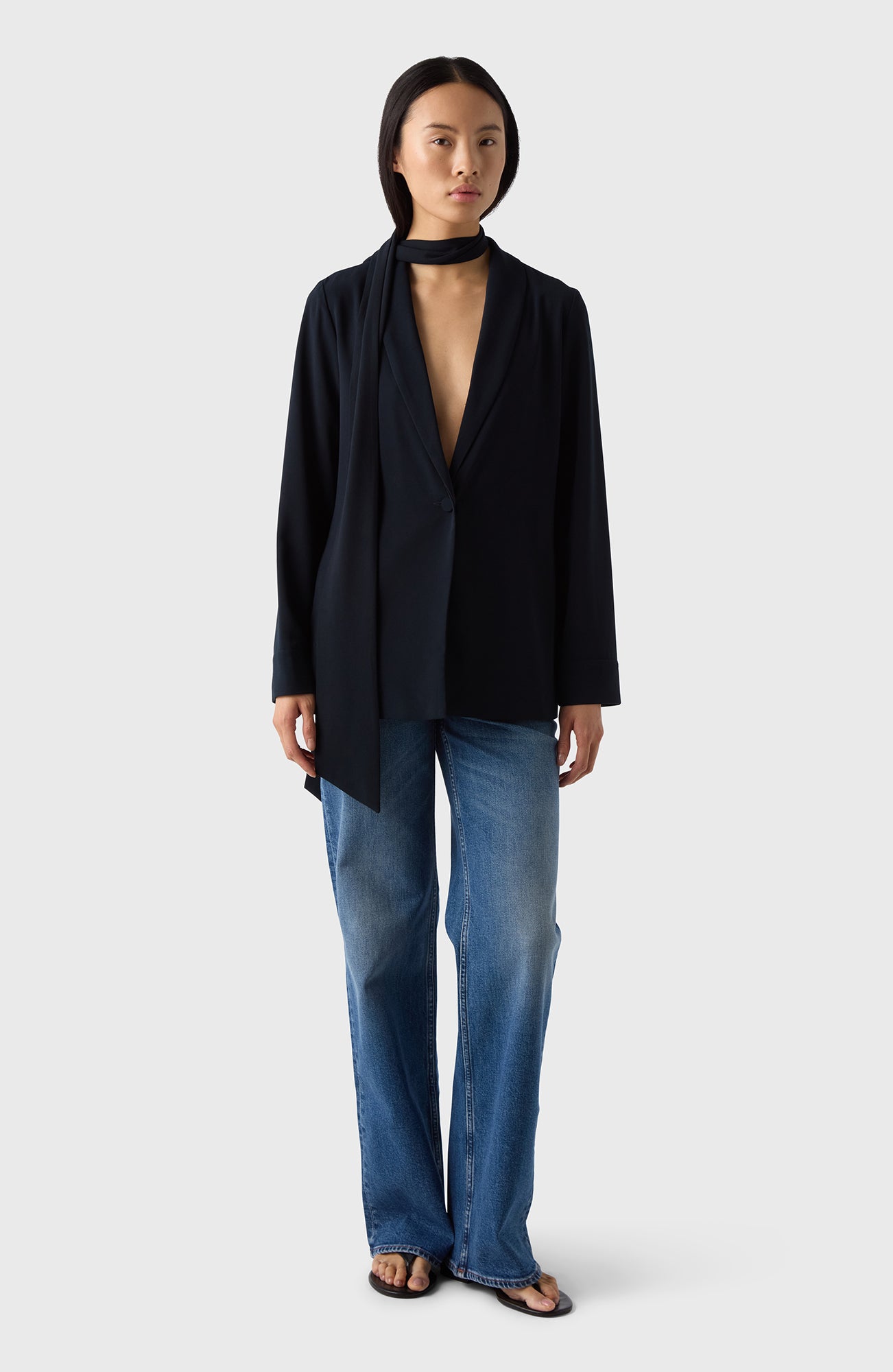 Every well-edited wardrobe needs a soft blazer, and this is the one that will stay in your wardrobe for many years to come. It’s made from a soft crepe and comes with an accompanying scarf/belt.
