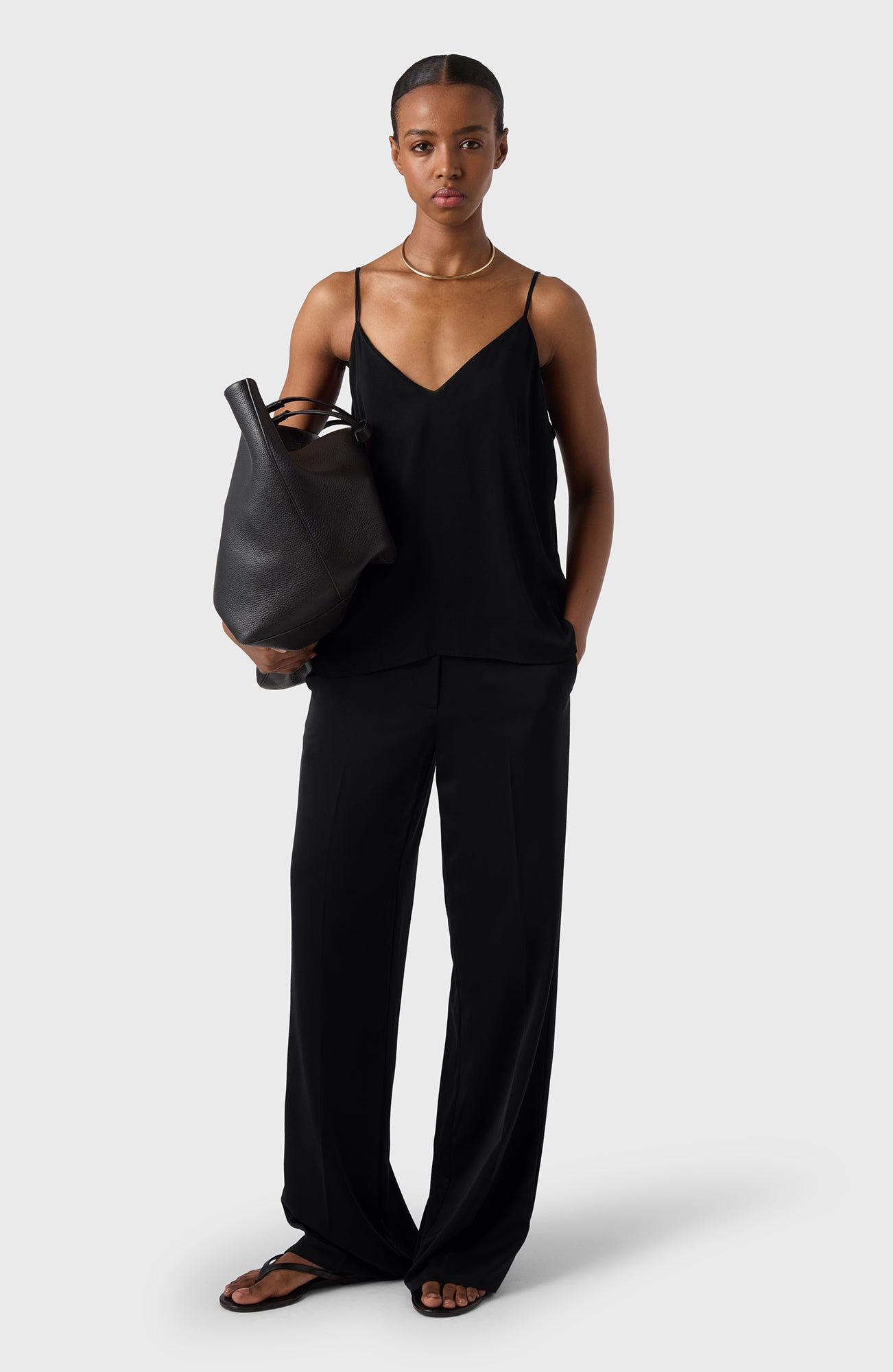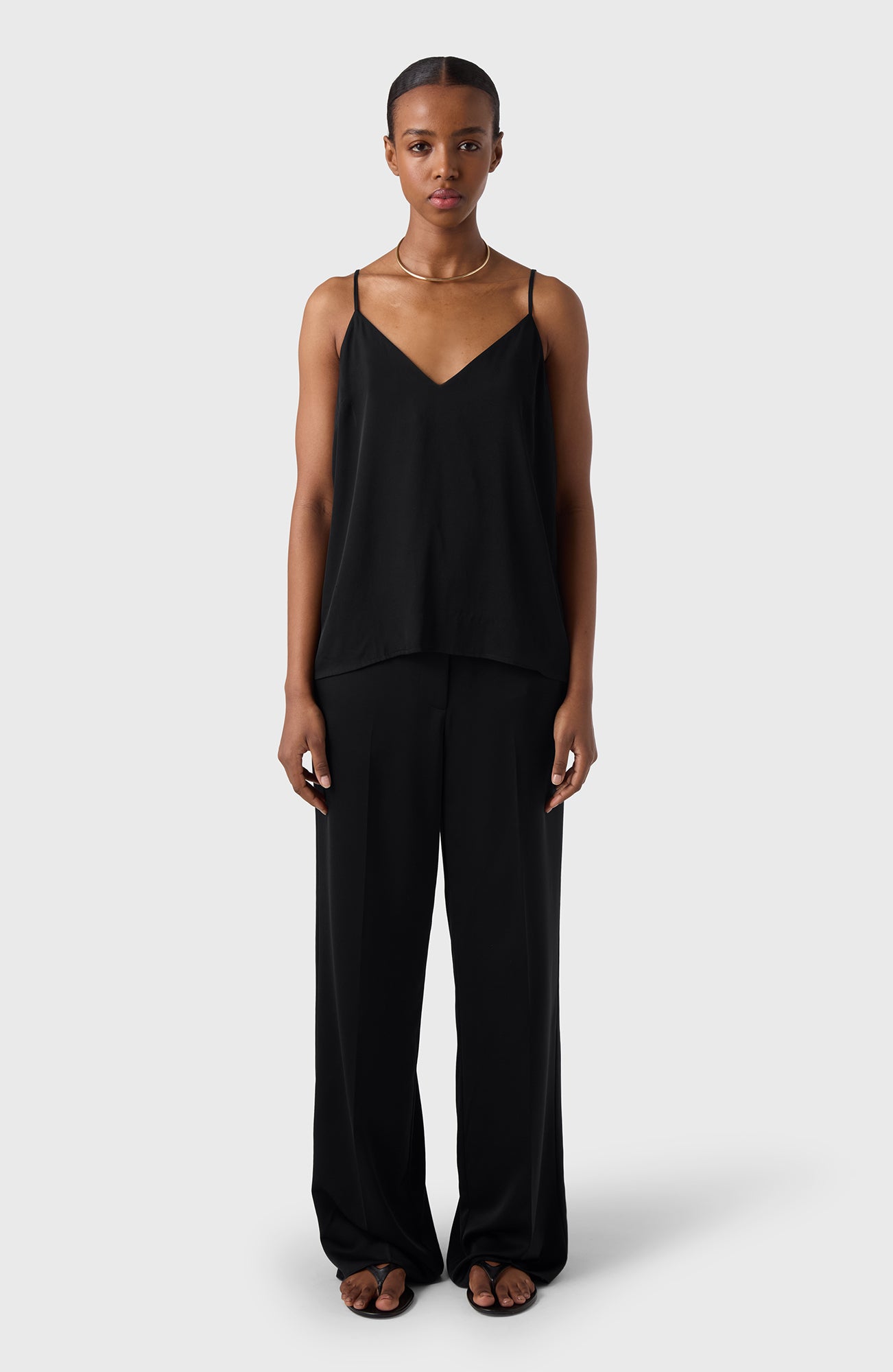 The Rikke Singlet is a V-necked singlet with spaghetti straps, crafted in silk stretch. It provides both an elegant and comfortable fit.