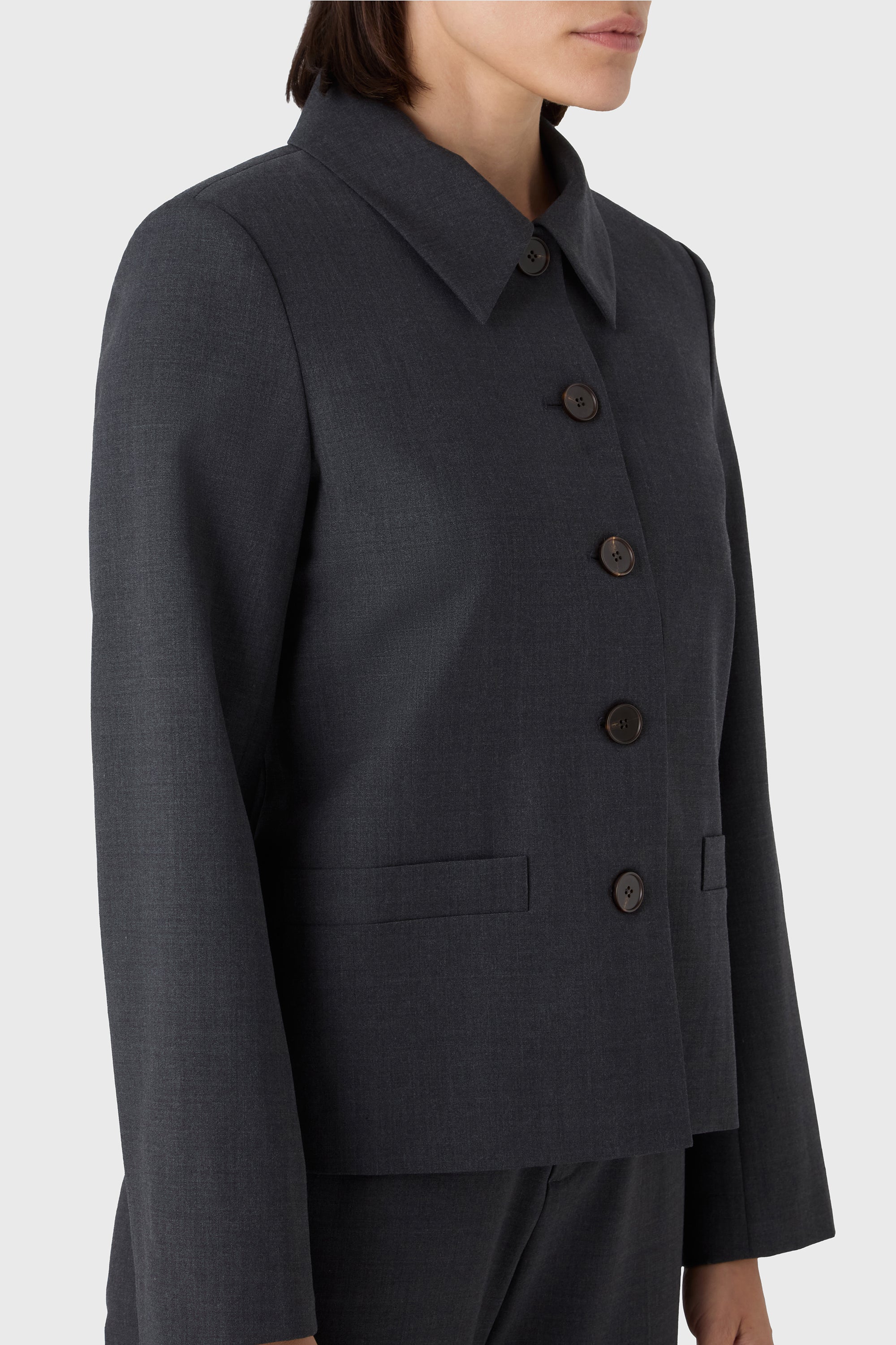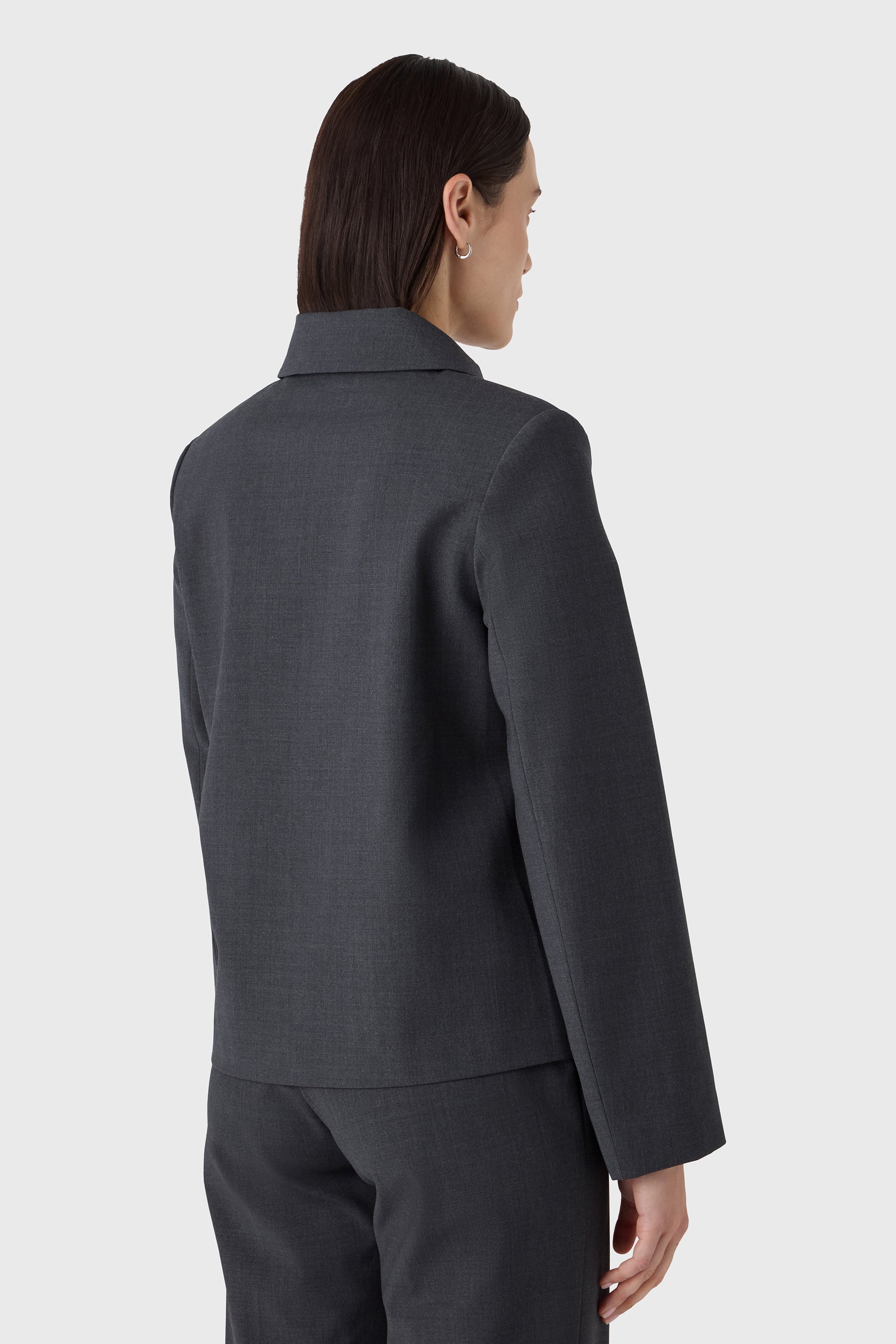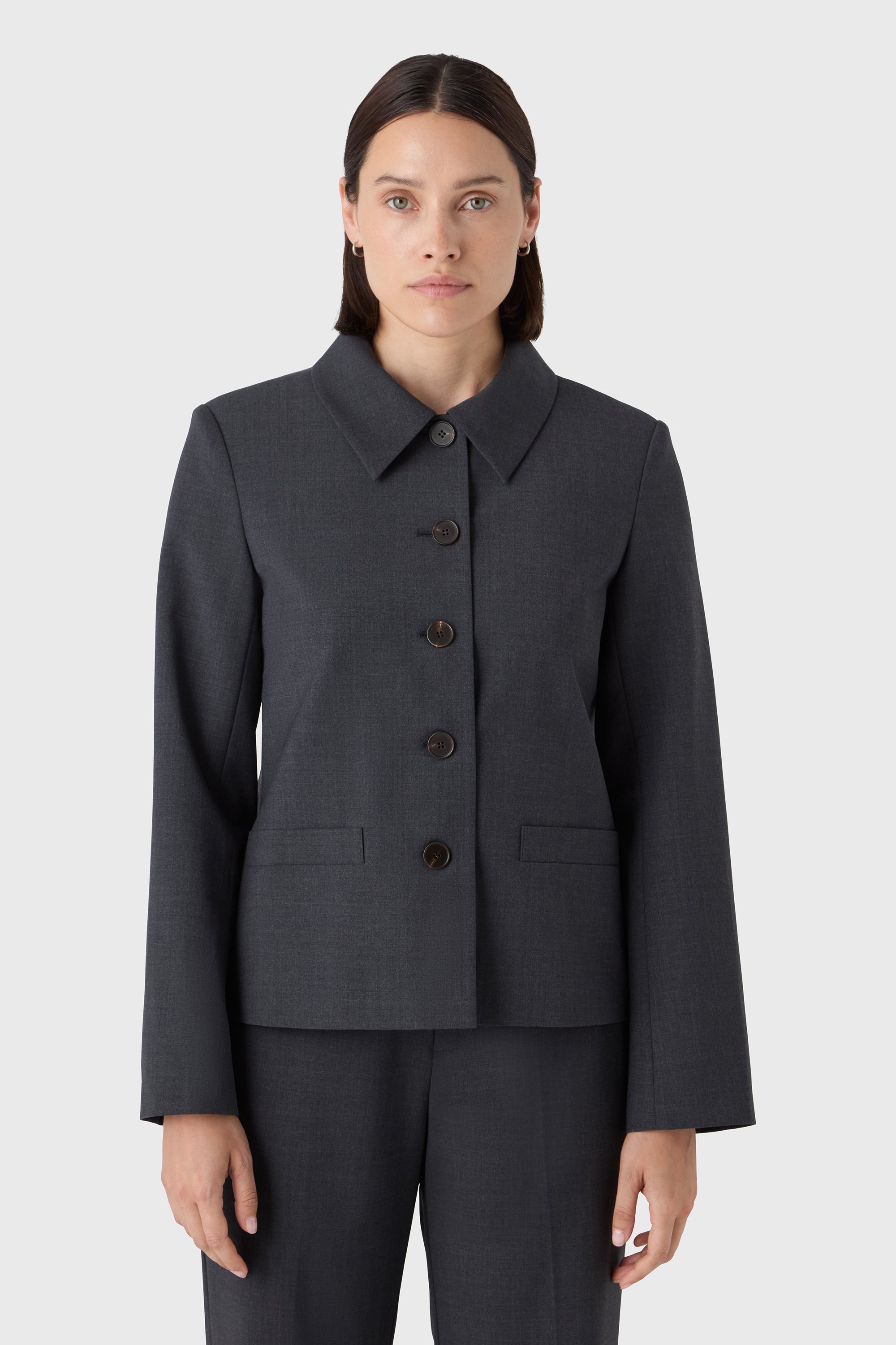 Tailored and minimal. The Broco Blazer is a short blazer cut from wool stretch with a sharp shirt collar, tonal buttons and discreet front pockets. Designed to sit neatly at the hip for a clean, structured look — easy to wear with denim or wide-leg trousers.