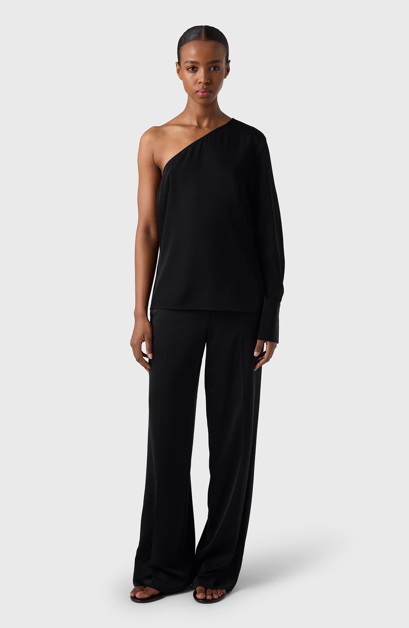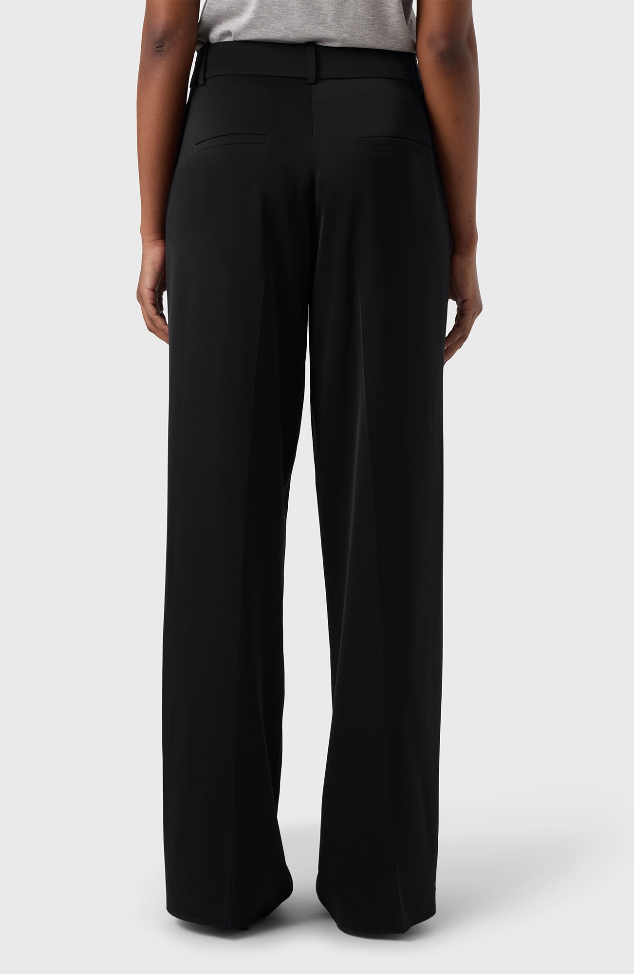 Tailored ease in a satin finish. The Ingrid Trousers are cut with a wide leg, mid-rise waist and front zip for a sleek silhouette. Soft satin stretch adds fluidity to every step — effortless to dress up or down.