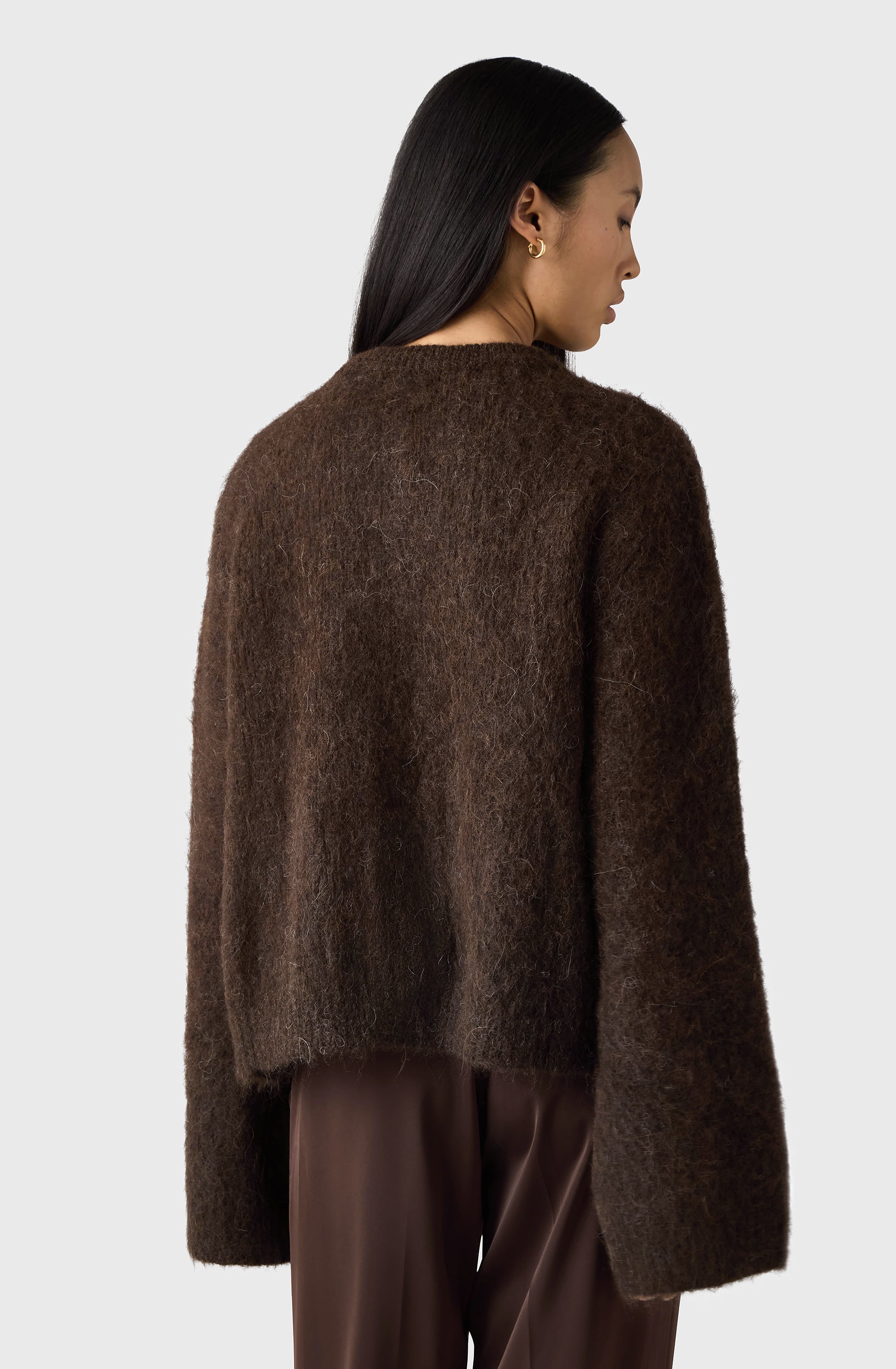 Soft volume with a textured finish. The Madeleine Cardigan is knitted from supersoft alpaca with a round neckline, wide sleeves and front patch pockets. An effortless piece with subtle structure — wear it open or buttoned, layered or light.