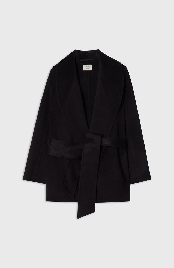 Minimal and softly structured. The Nina Coat is crafted from 100% soft wool with a shawl collar and sculpted seams for a feminine shape. The matching belt cinches the waist, while the hip-length cut makes it ideal for layering.