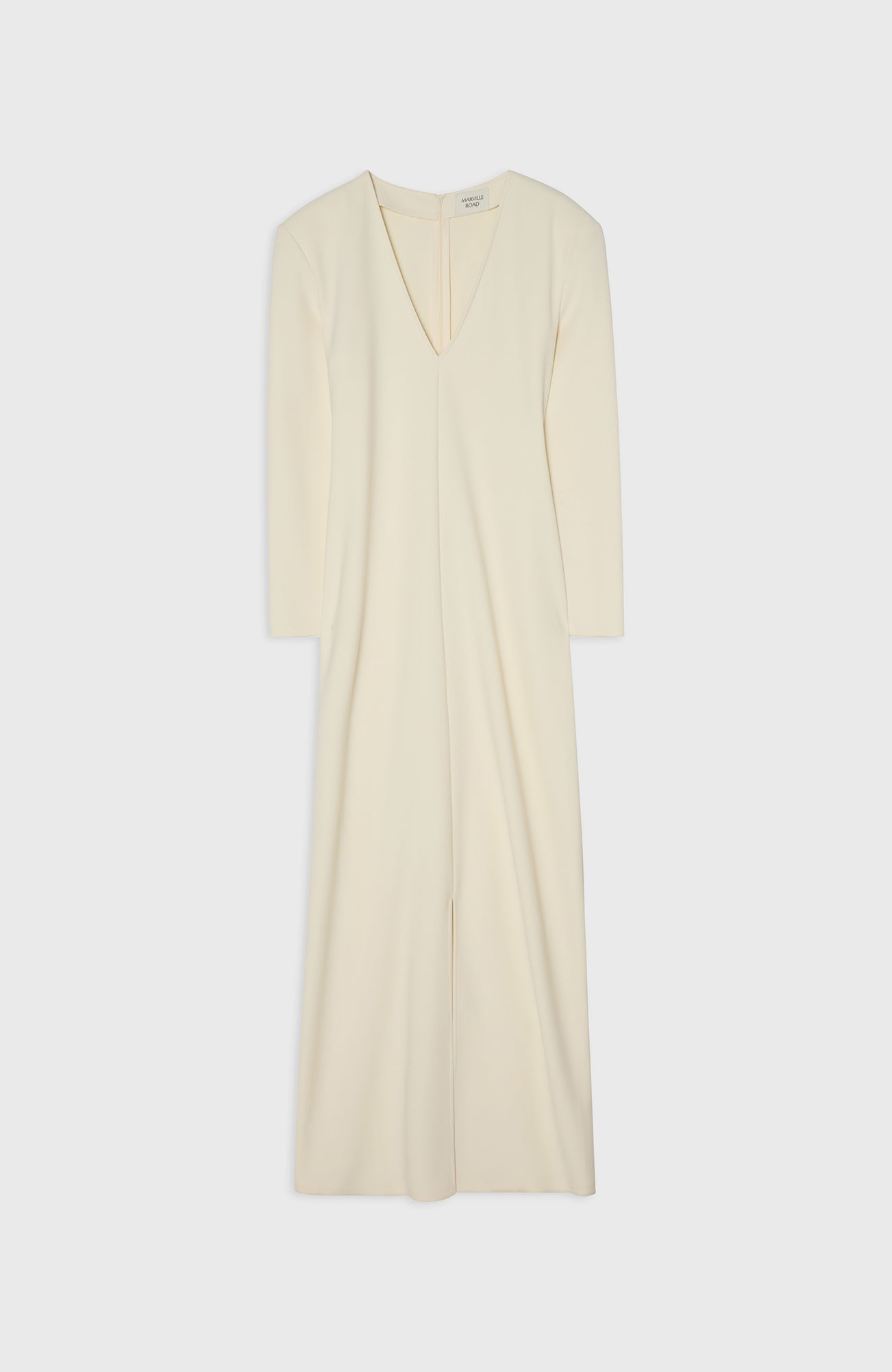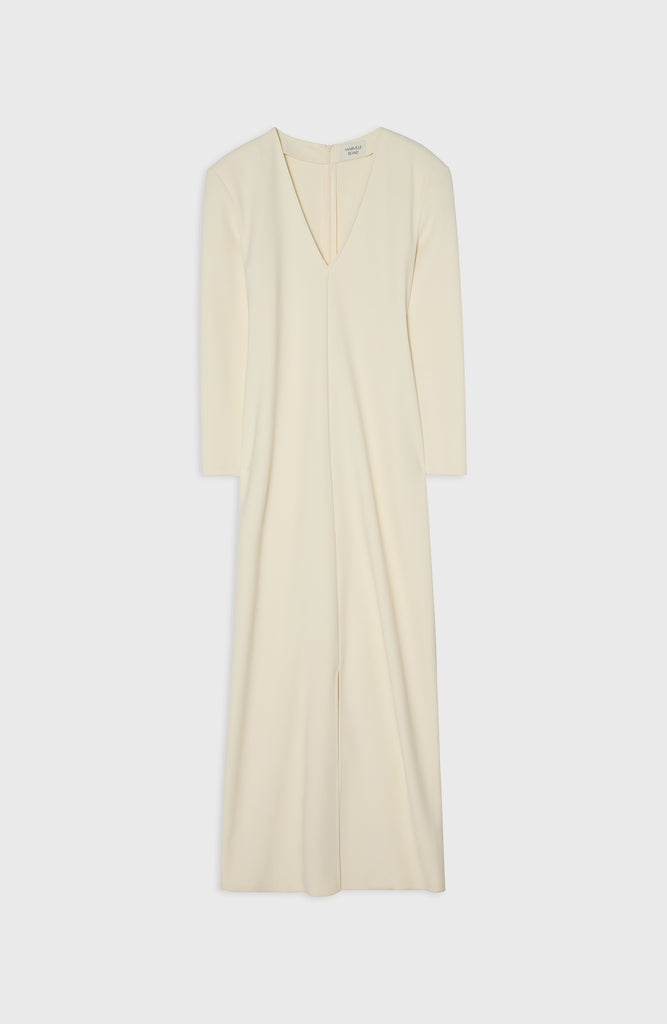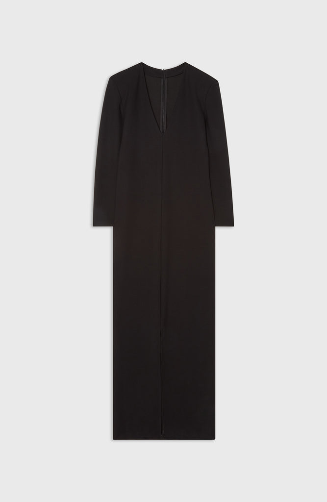 Bold and minimal. The Valerie Dress is made from sculpting superstretch jersey crepe with a deep V neckline, long sleeves and defined shoulders. A clean silhouette that makes a quiet statement — elegant from every angle.
