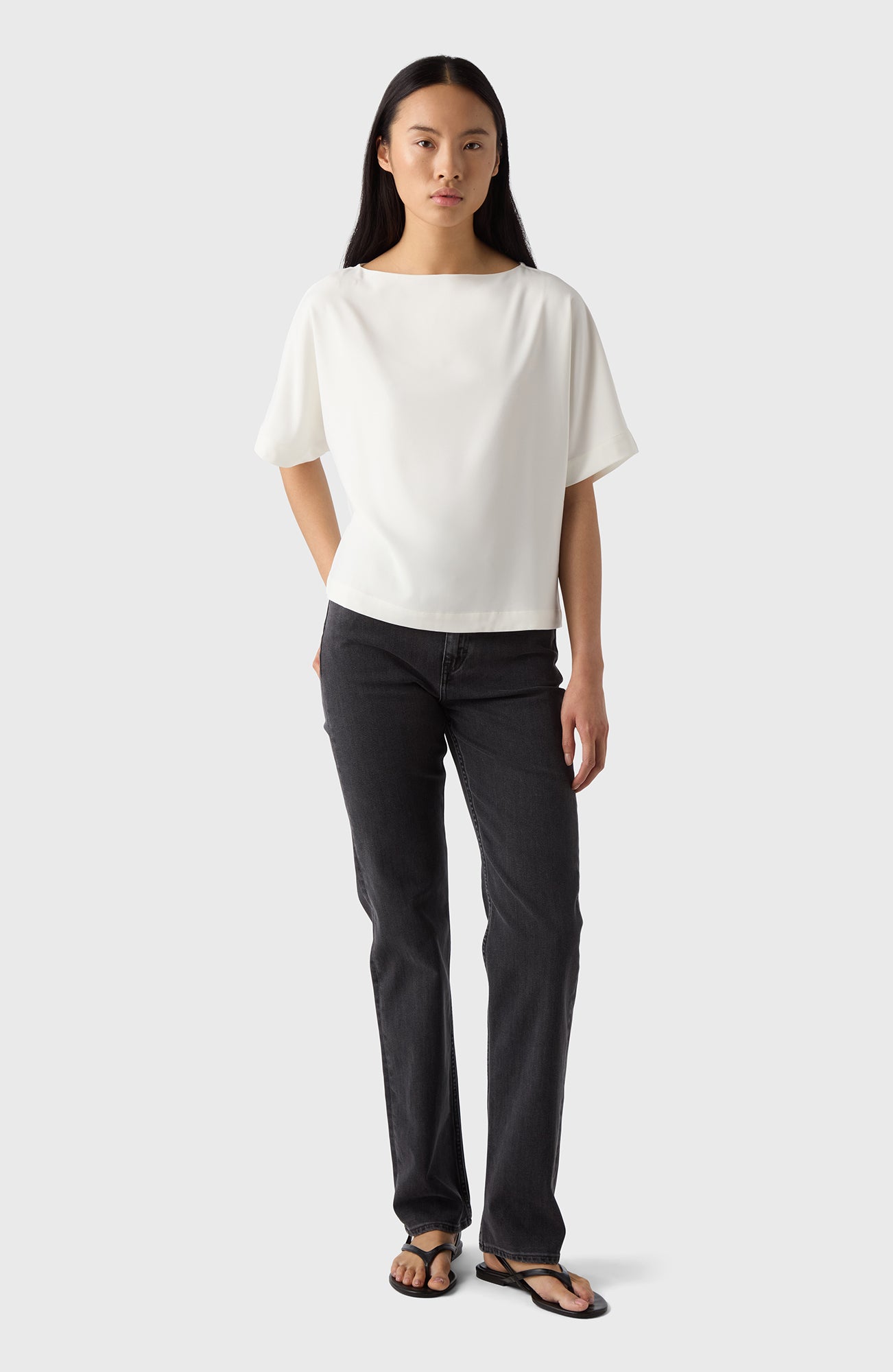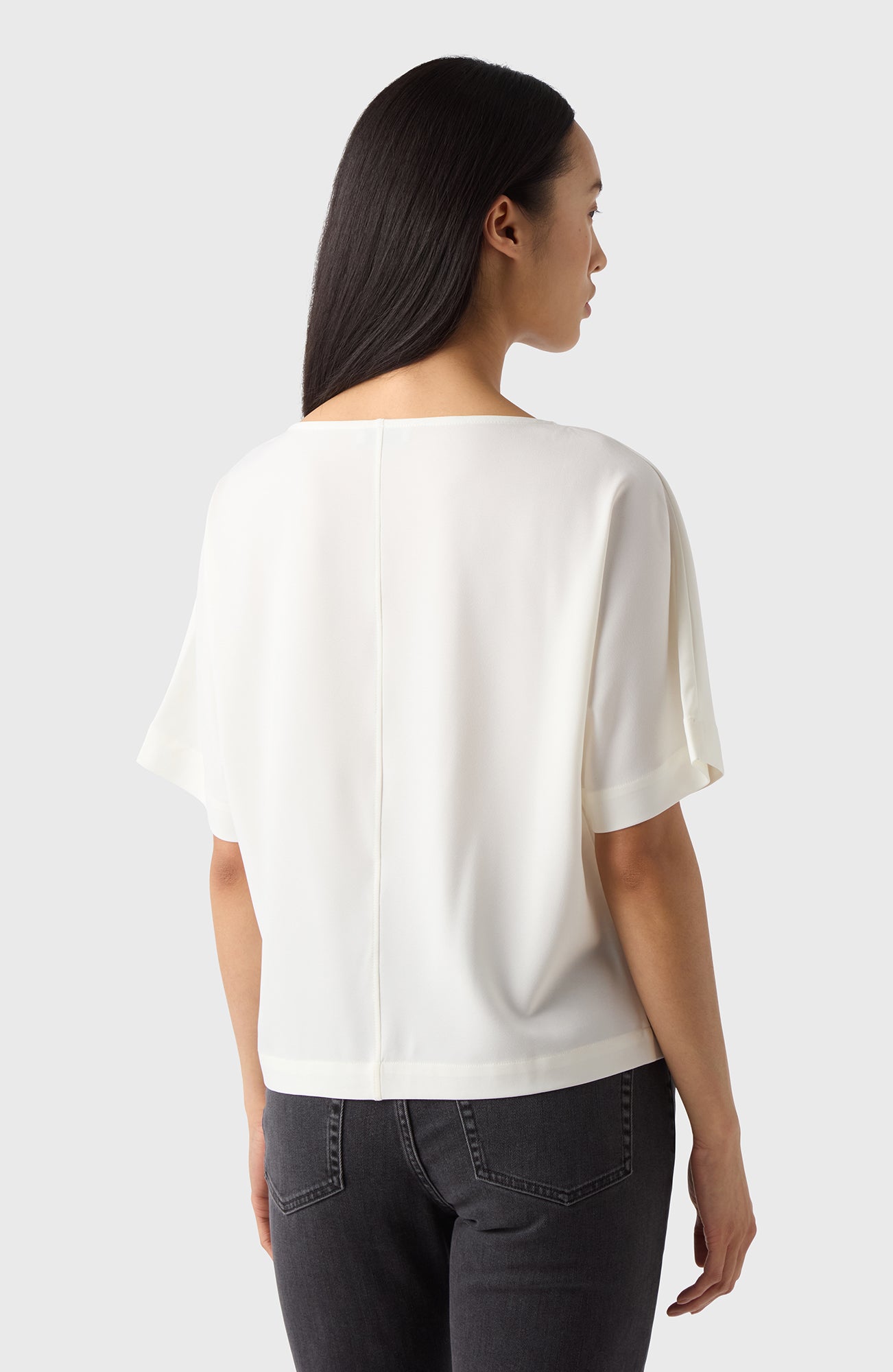 Ava is truly an every-occasion top that will fit every body type. With a slight boat neck and wide arms that end just above the elbow, it has such a flattering fit. Made in our stretch crêpe that's machine washable and crease-resistant this top will truly become a capsule piece in your wardrobe no matter the season.