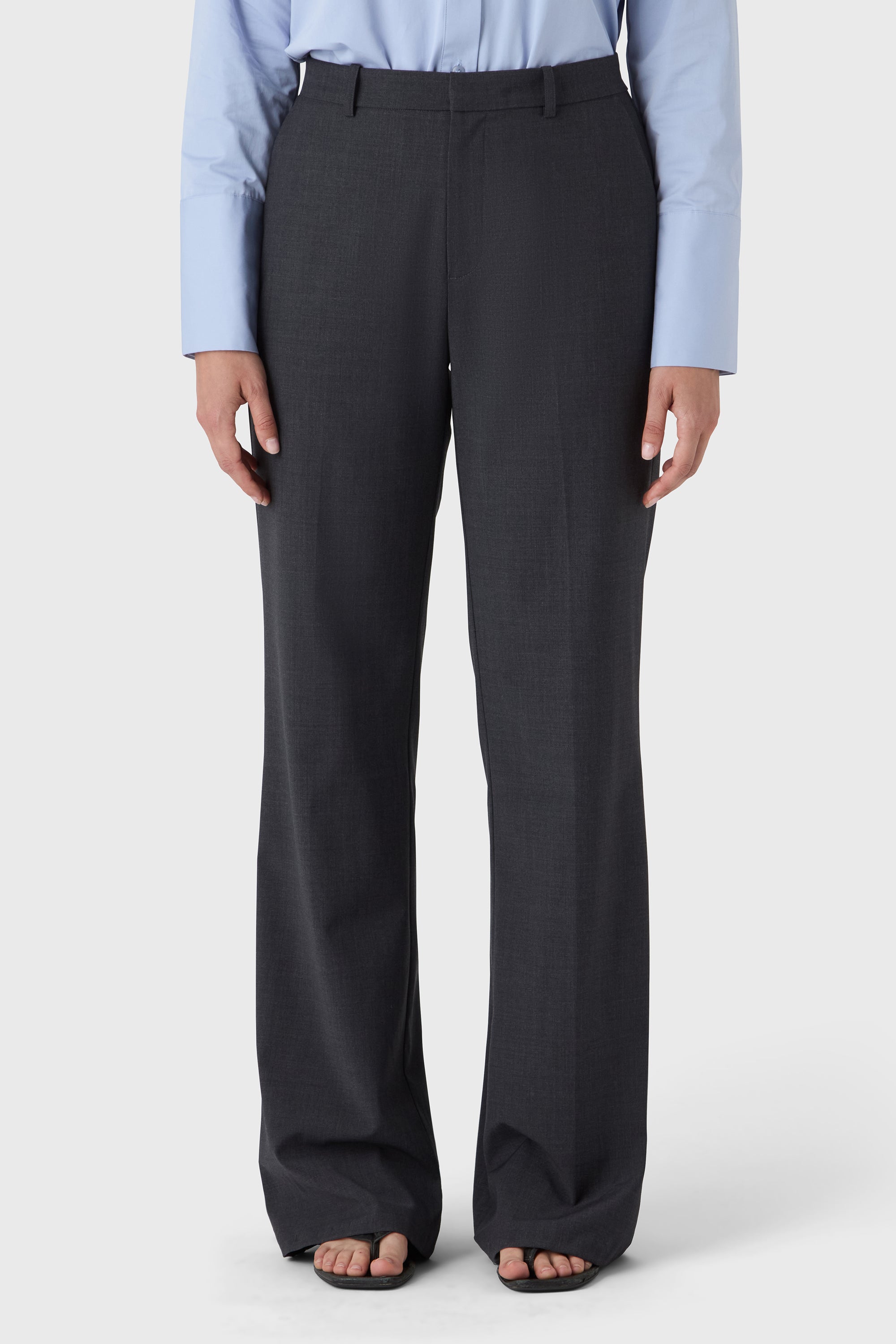 A modern take on tailoring. The Elle Trousers are cut from machine-washable wool stretch with a high waist, front zip and clean side pockets. The slightly flared leg creates a long, elegant silhouette — ideal with heels or a sharp flat.