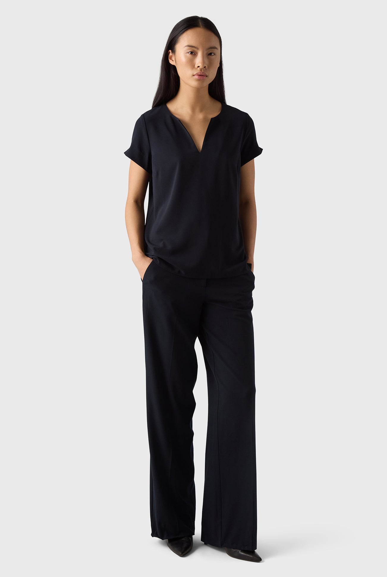 A true Marville Road Icon are our Ingrid Trousers, with front zip and loops around the waist. Ingrid is made of our popular soft stretch crêpe and comes with a wide leg.